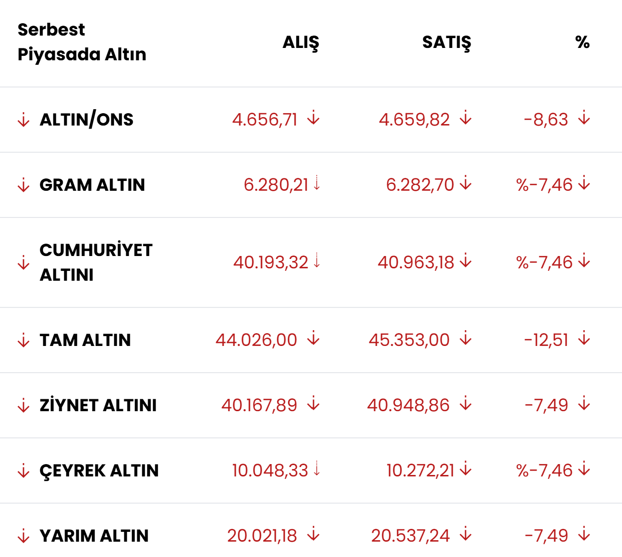 Sabah saatlerinde gram altın 6.254 TL seviyesinde işlem görürken, geçen haftayı 6.805 TL’den tamamlayan fiyatlardaki geri çekilme haftanın ilk işlemlerinde de devam etti. Ons altın ise 4.656 dolar seviyesine kadar geriledi.