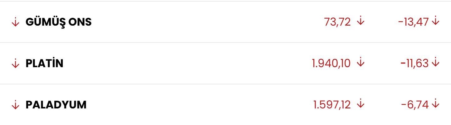 Yeni haftaya girilirken vadeli endeksler hem ABD’de hem Avrupa’da sert düşüşlere işaret etti. Altın düşüşünü sürdürürken, gümüş dalgalı seyrini korudu. Spot altın yüzde 6,3’e varan kayıp yaşadı. Gümüş ise önce yüzde 3,2 yükseldikten sonra sert dalgalanmayla ons başına yaklaşık 75 dolara geriledi.