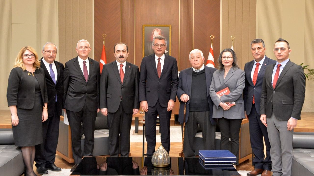 Cumhurbaşkanı Tufan Erhürman, Türk Tarih Kurumu Başkanı Prof. Dr. Yüksel Özgen ile beraberindeki heyeti kabul etti.