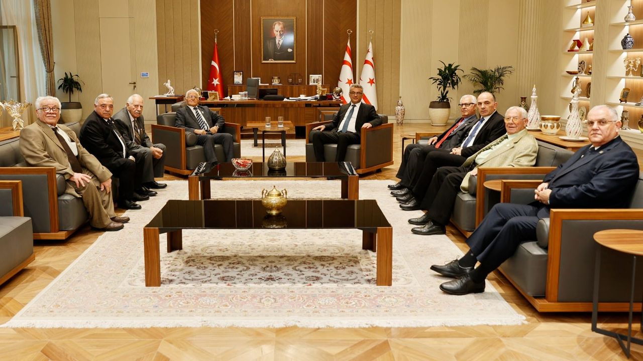 Cumhurbaşkanı Tufan Erhürman, Erenköy Mücahitler Derneği Başkanı Ahmet Yıldırım başkanlığında Muharip Dernek Başkanlarını kabul etti