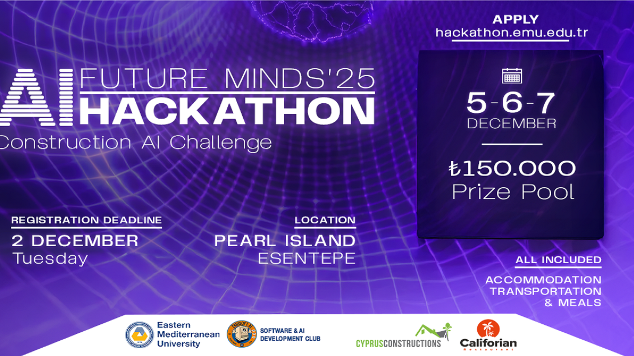 Doğu Akdeniz Üniversitesi (DAÜ) Öğrenci Gelişim, Etkinlikler ve Spor İşleri Müdürlüğü’ne bağlı Yazılım ve Yapay Zekâ Geliştirme Kulübü, inşaat sektörü temalı Hackathon yarışması düzenliyor.