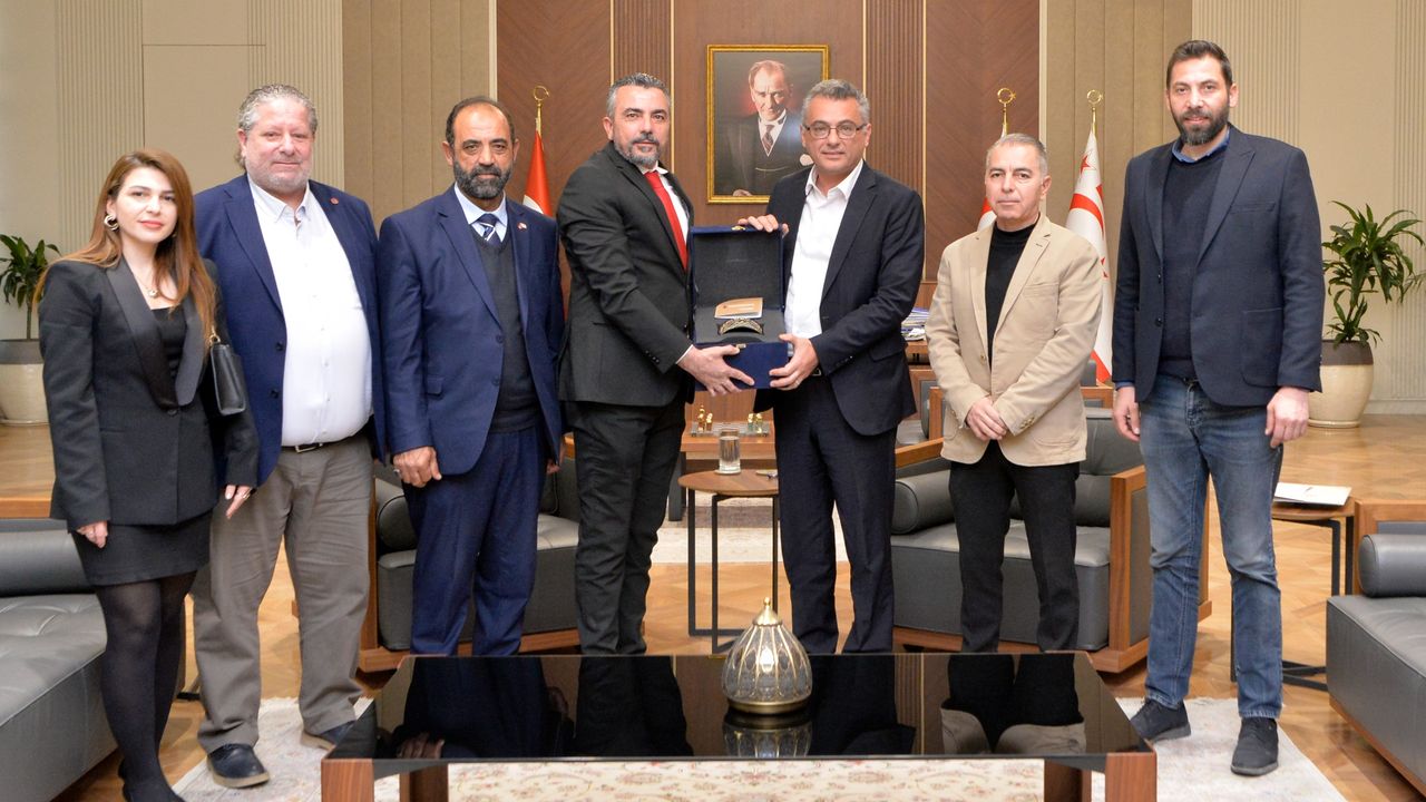 Cumhurbaşkanı Tufan Erhürman, Hür İşçi Sendikaları Federasyonu (Hür-İş) Genel Başkanı Ahmet Serdaroğlu ve beraberindeki heyeti kabul etti