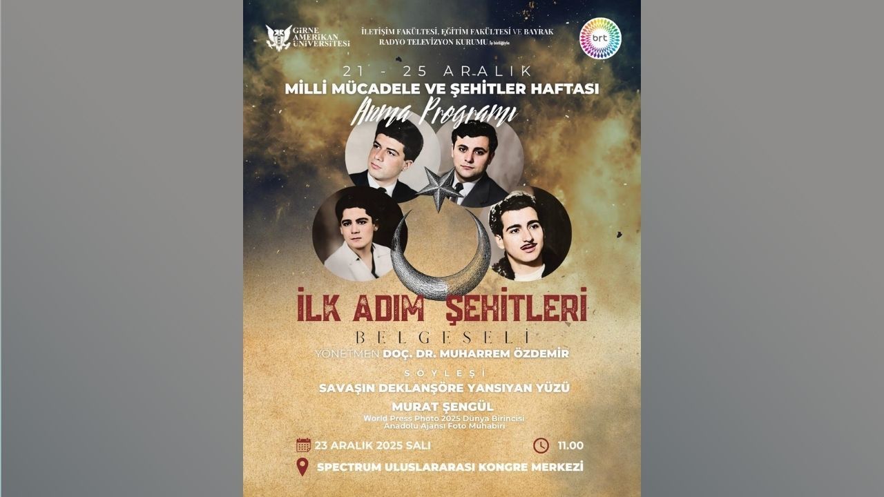 Girne Amerikan Üniversitesi’nde (GAÜ) düzenlenecek “Milli Mücadele ve Şehitler Haftası” anma etkinliği kapsamında 23 Aralık’ta “İlk Adım Şehitleri” belgeselinin gösterimi yapılacak.