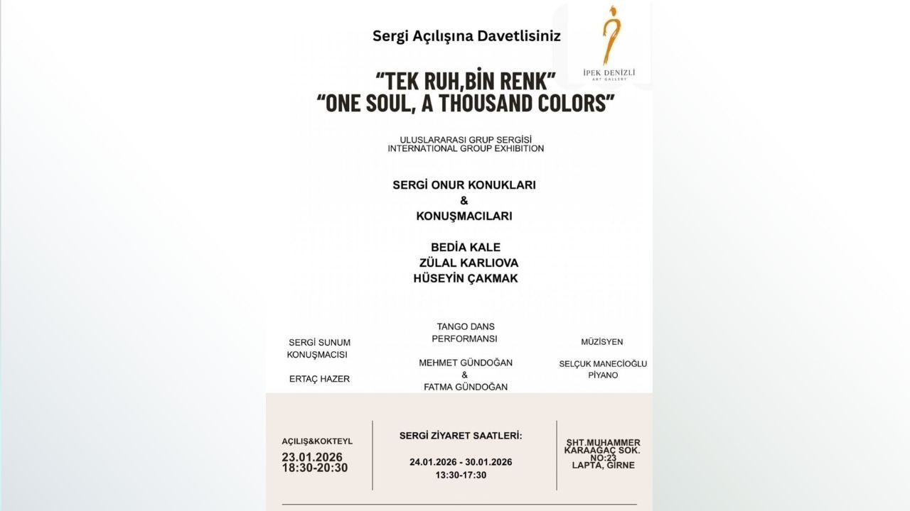 İpek Denizli Sanat Galerisi tarafından düzenlenen “Tek Ruh, Bin Renk” adlı üçüncü uluslararası grup sergisi 23 Ocak Cuma günü saat 18.30’da açılacak.