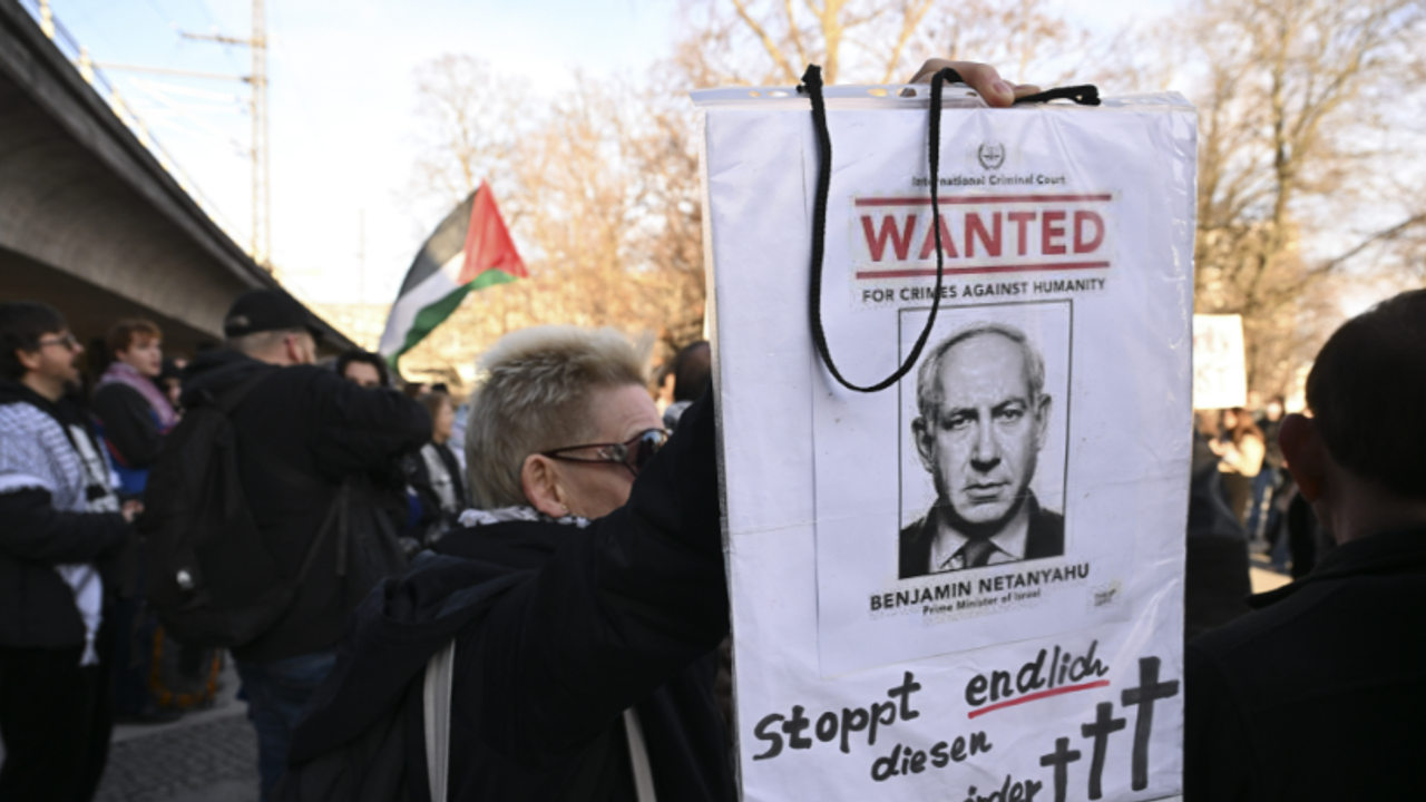 İçişleri Bakanlığı önünde toplanan yaklaşık 250 kişi, "Netanyahu Berlin'de mi? Şeffaflık ve tutarlılık istiyoruz" başlıklı bir gösteri düzenleyerek Netanyahu'nun uçağının başkent Berlin'de koruma altına alınmasını protesto etti.