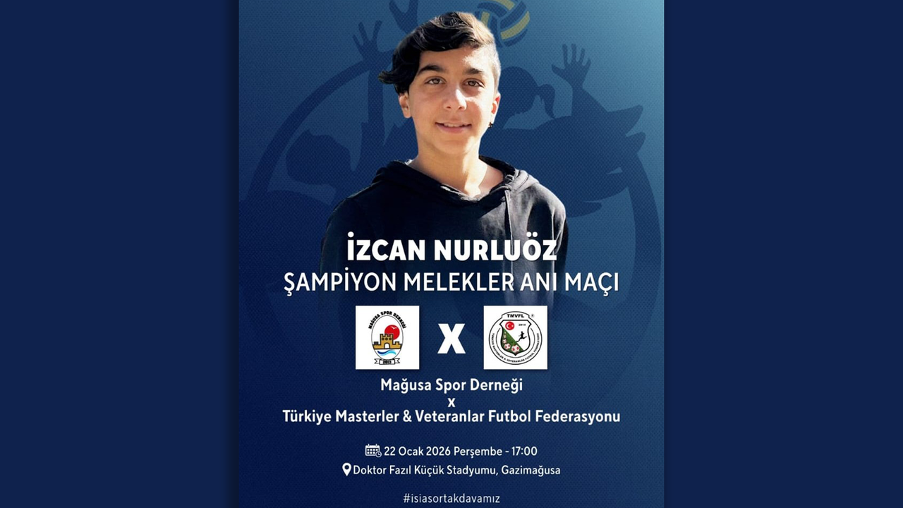 “İzcan Nurluöz Şampiyon Melekler Anı Maçı”, perşembe günü, Mağusa Spor Derneği ile Türkiye Masterler & Veteranlar Futbol Federayonu arasında oynanacak.
