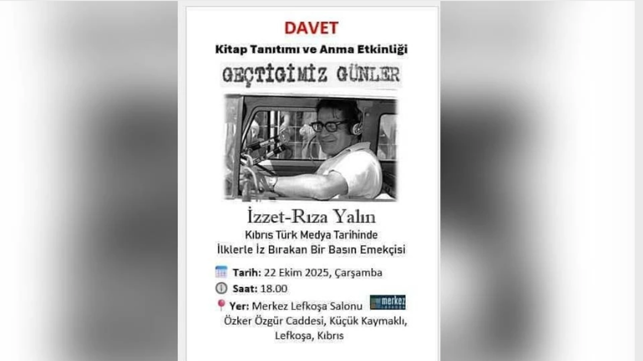 Etkinlik, Yalın ailesi tarafından 22 Ekim Çarşamba günü saat 18.00’de Merkez Lefkoşa Salonu’nda düzenlenecek.