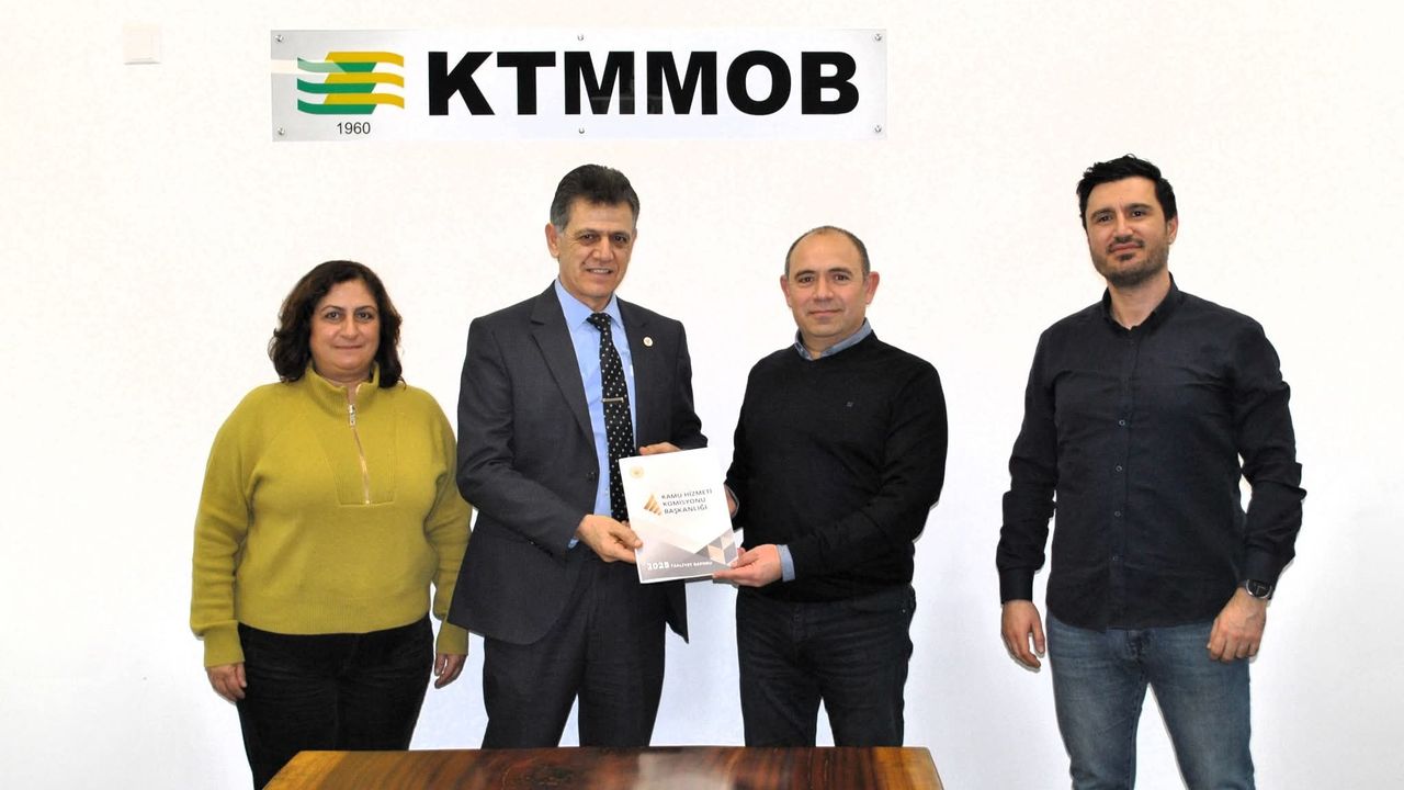 Kamu Hizmeti Komisyonu (KHK) Başkanı Ömer Köseoğlu, Kıbrıs Türk Mühendis ve Mimar Odaları Birliği’ni (KTMMOB) ziyaret ederek, KHK Başkanlığı tarafından hazırlanan 2025 Yılı Faaliyet Raporu’nu sundu.