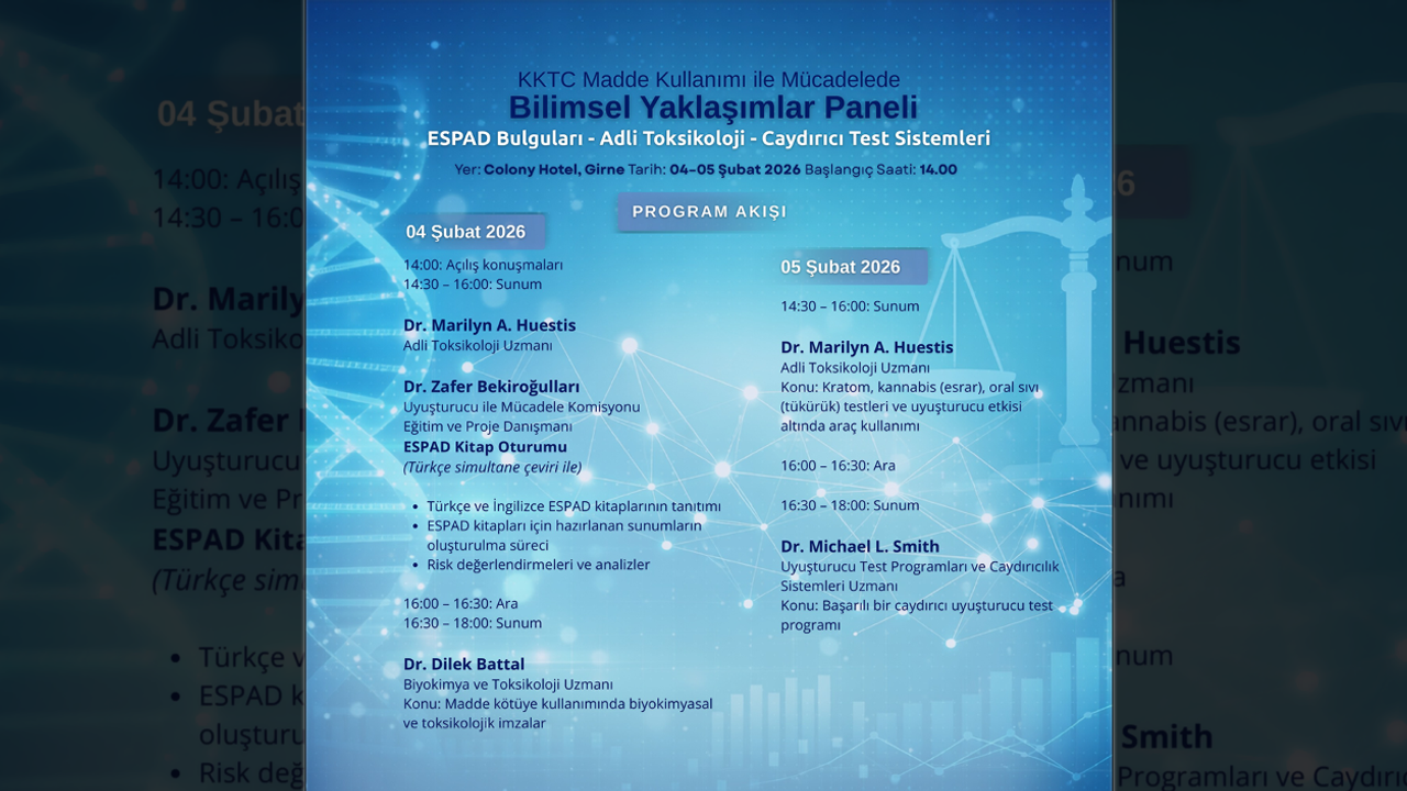 Başbakanlık Uyuşturucu ile Mücadele Komisyonu’ndan yapılan açıklamaya göre, Girne Colony Otel’de yer alacak ve iki gün sürecek panel, yarın saat 14.00’te açılış konuşmalarıyla başlayacak.