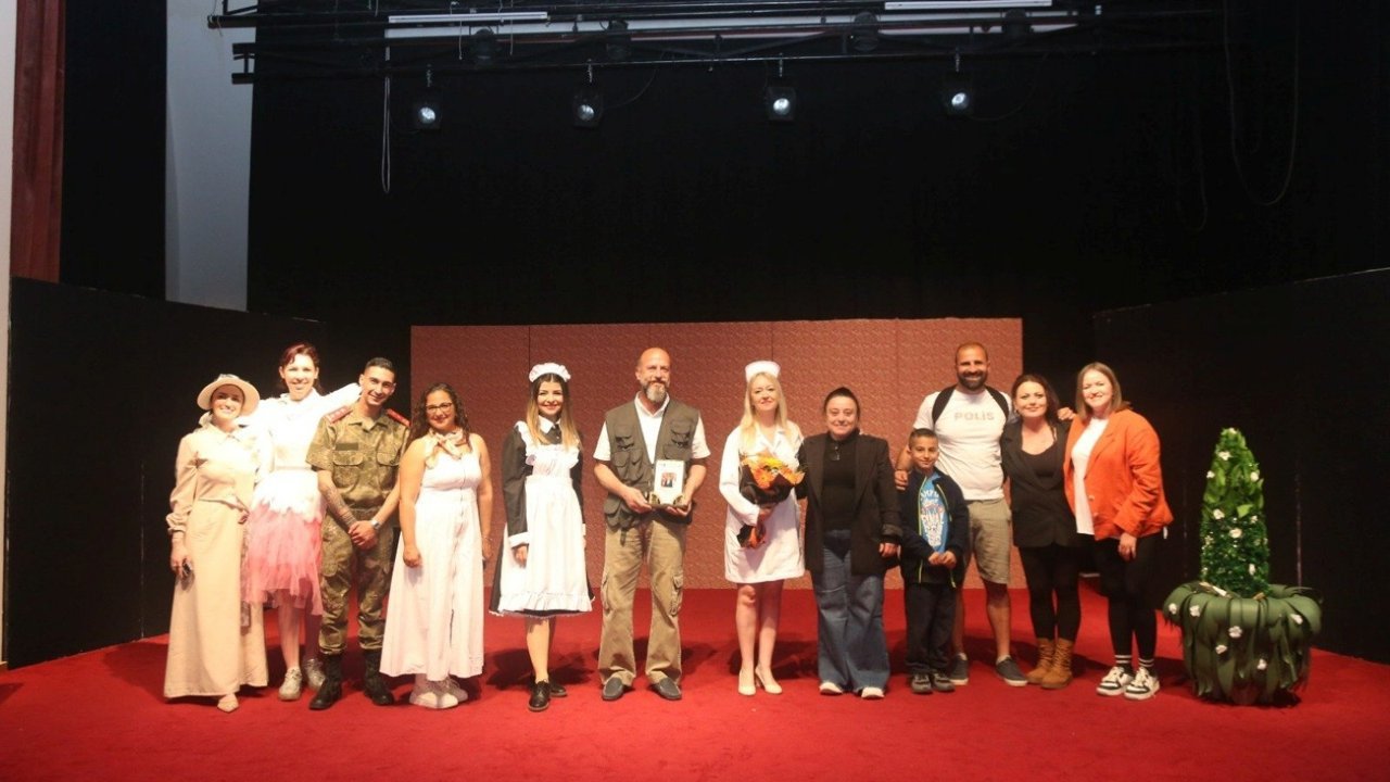 İskele Atatürk Kültür Merkezi’nde izleyiciyle buluşan oyunu İskele Belediyesi Meclis Üyeleri Zekiye Gece ve Hanife Demir’in yanı sıra İskele Belediye Tiyatrosu ekibi de takip etti.