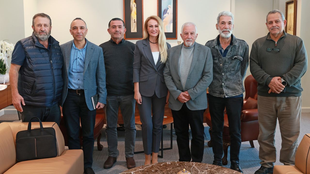 Cumhurbaşkanı Tufan Erhürman’ın eşi Nilden Bektaş Erhürman, Taş Ocakları Birliği Başkanı Cenk Sarper ve beraberindeki heyetle bir araya geldi.