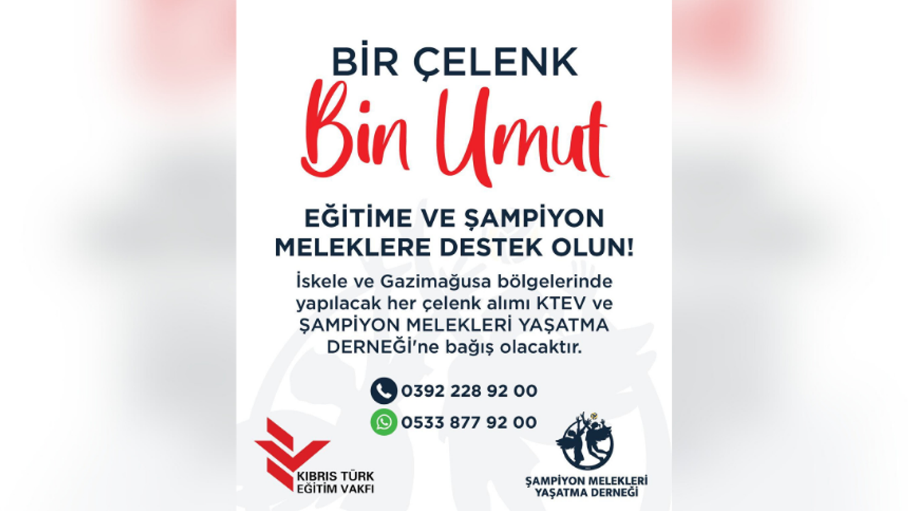 Şampiyon Melekleri Yaşatma Derneği ile Kıbrıs Türk Eğitim Vakfı “Bir Çelenk, Bir Umut – Çiçekleriniz Başka Çocuklara Umut Olsun” sloganıyla bağış çağrısında bulundu.