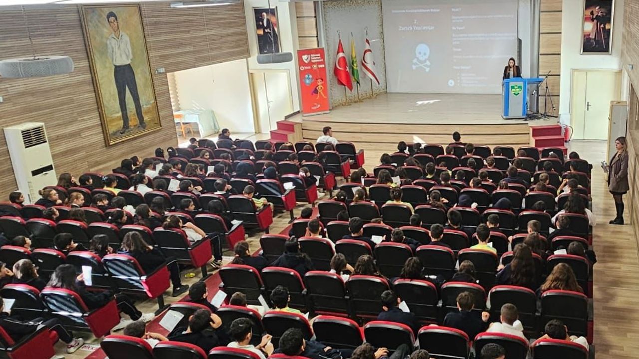 Bilgisayar Mühendisleri Odası üyelerinden Esat Gürhan, Fatoş L. Özbingül, Bora Tüccaroğlu ve Ali Tüzel’in verdiği eğitimlerde; öğrencilere internette karşılarına çıkabilecek riskler, zararlı yazılımlar, kişisel bilgi güvenliği, siber saldırılar, yapay zeka ve 5G teknolojisinden bilgiler aktarılarak, bilgilendirici test kağıtları dağıtıldı.