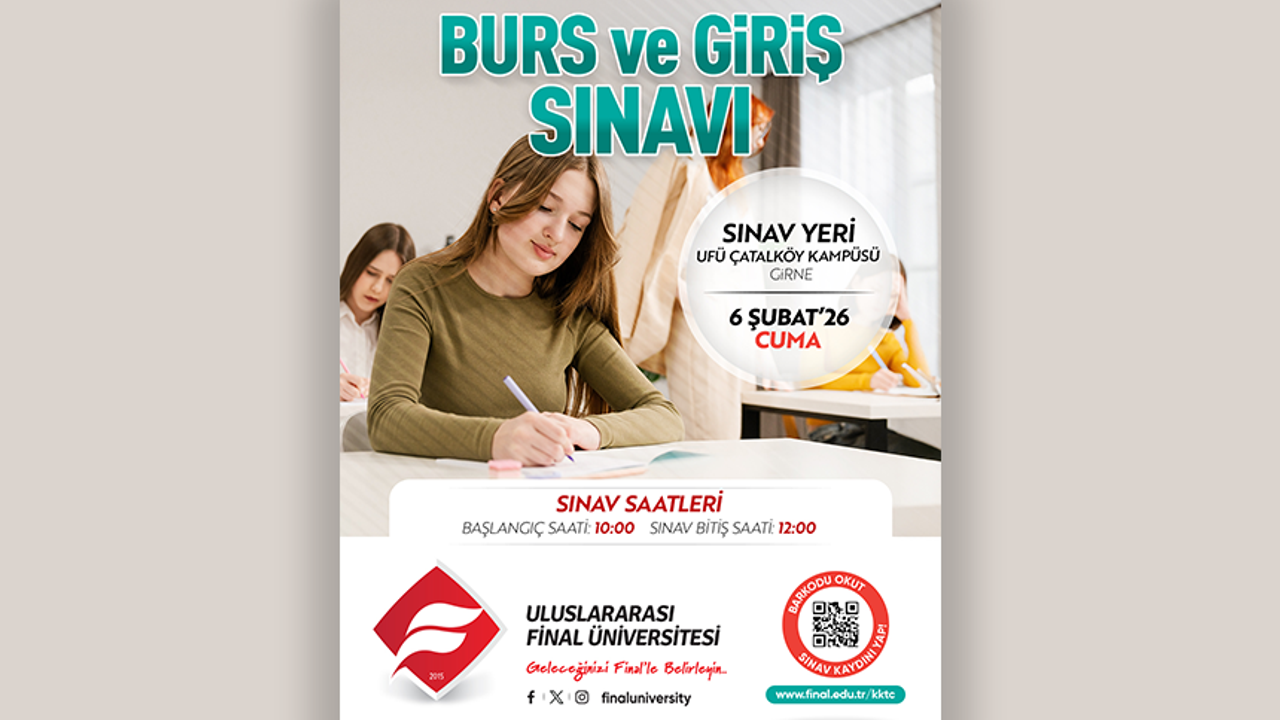 Uluslararası Final Üniversitesi, KKTC vatandaşı lise mezunları ve son sınıf öğrencileri ile lisenin tamamını kesintisiz olarak KKTC’de tamamlamış diğer ülke vatandaşı öğrenciler için burs ve giriş sınavı düzenliyor.