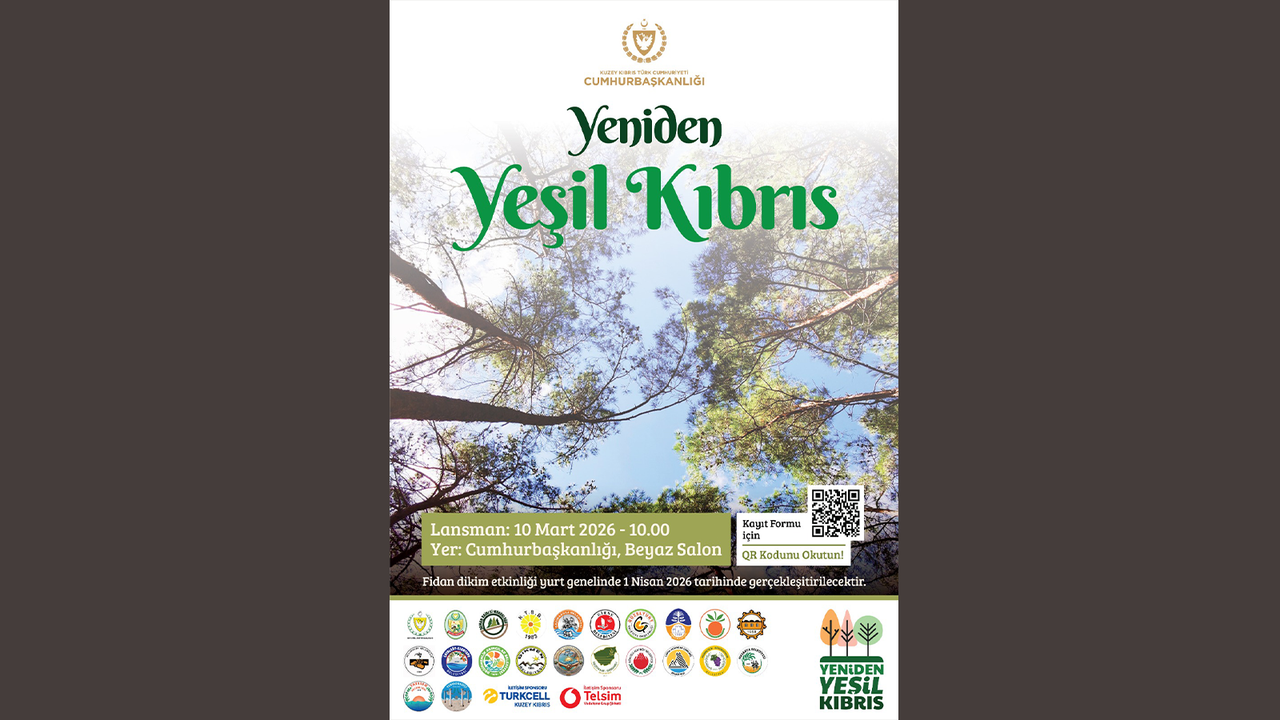 Cumhurbaşkanlığı öncülüğünde Milli Eğitim Bakanlığı, Tarım ve Doğal Kaynaklar Bakanlığı, Orman Dairesi ve tüm belediyelerin iş birliği ile hayata geçirilen ağaçlandırma ve fidan dikim projesi “Yeniden Yeşil Kıbrıs”, yarın Cumhurbaşkanlığı Beyaz Salon’da düzenlenecek etkinlikle tanıtılacak.