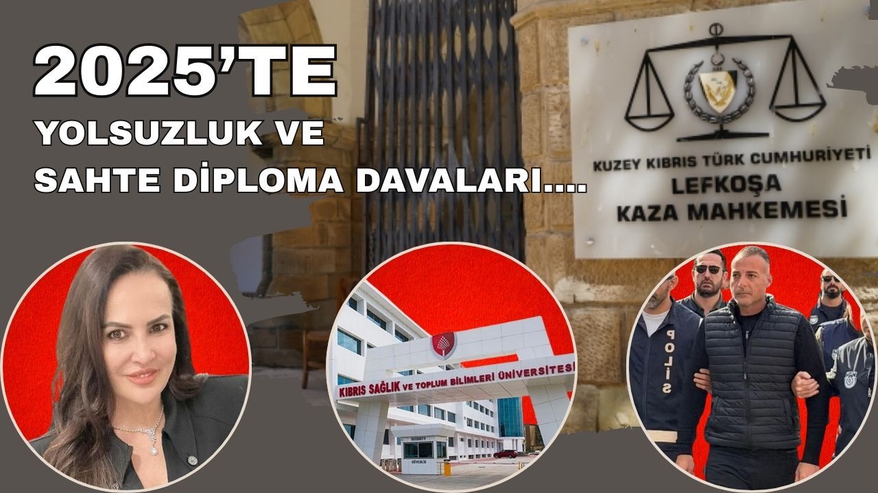 Kıbrıs Sağlık ve Toplum Bilimleri Üniversitesi’nde (KSTÜ) patlak veren yolsuzluk davasında üç sanık, 4 ile 15 yıl arasında değişen hapis cezalarına çarptırıldı. "Sahte diploma" davasında ise aralarında üst düzey bürokrat ve polis yetkililerinin de bulunduğu sanıkların yargı süreci devam ediyor.