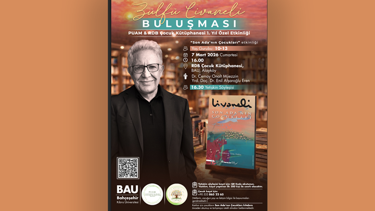 Bahçeşehir Kıbrıs Üniversitesi edebiyat etkinliğinde, Türkiye’den besteci, senarist, yönetmen, yazar ve düşünce insanı Zülfü Livaneli, çocuk okurlarla bir araya gelecek.